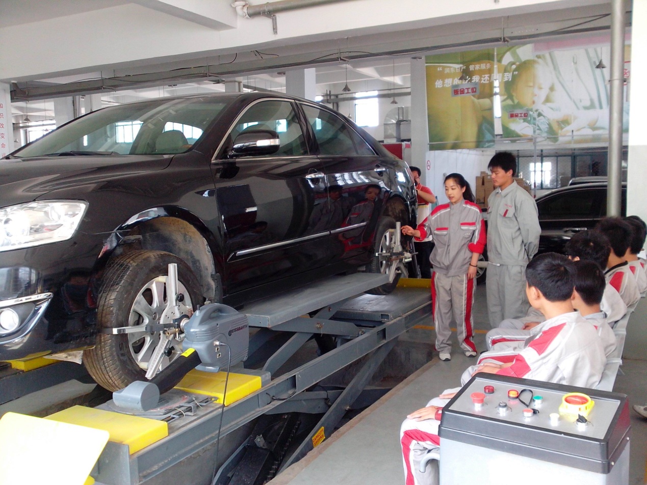 新建的二級(jí)維護(hù)與四輪定位實(shí)訓(xùn)室