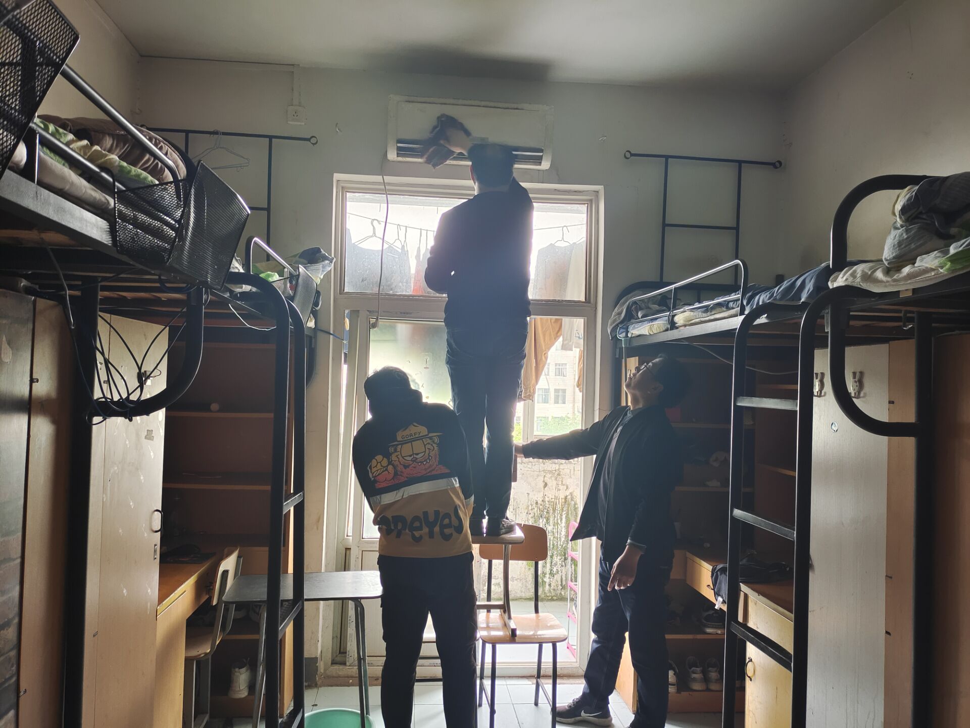 為深入開展黨史學(xué)習(xí)教育活動(dòng),做好實(shí)踐轉(zhuǎn)化,圍繞共建和諧校園,切實(shí)解決學(xué)生關(guān)心的實(shí)際問題,密切師生之間的關(guān)系,信電學(xué)院黨支部經(jīng)過到宿舍走訪,了解到學(xué)生宿舍的空調(diào)從安裝后已有多年沒有進(jìn)行過濾網(wǎng)清洗,夏季即將來臨,為提高空調(diào)的使用效果,信電學(xué)院黨支部利用教師黨員機(jī)電專業(yè)的特長(zhǎng),于4月23日下午組織黨員深入學(xué)生宿舍開展志愿者活動(dòng),為楚河校區(qū)信電學(xué)院25間學(xué)生學(xué)生宿舍進(jìn)行空調(diào)維護(hù)、清洗濾網(wǎng)、維修門鎖等為學(xué)生辦實(shí)事活動(dòng),老師為學(xué)生服務(wù),受到了學(xué)生的歡迎。