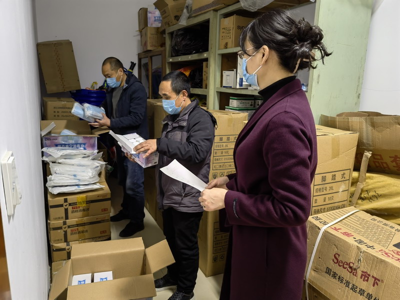 共計(jì)發(fā)放口罩9000個、84消毒片50瓶、防護(hù)服20套、體溫槍30支、噴霧器15個……