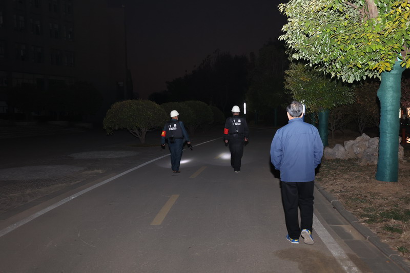 深夜的校園,一片寧靜祥和,閃爍的星辰注視著仍在執(zhí)行防疫任務(wù)的工作人員,步履匆匆,眼神堅(jiān)毅……