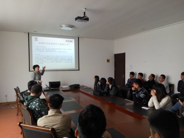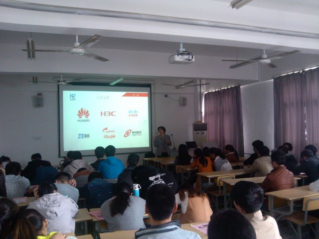 錢梁工程師從專業(yè)素養(yǎng)、職業(yè)能力以及敬業(yè)精神講述了一個IT網(wǎng)絡(luò)工程師成長過程。黃愛瑜主任結(jié)合H3c網(wǎng)絡(luò)工程師認(rèn)證介紹行業(yè)對專業(yè)人才的需求、職業(yè)能力培養(yǎng)以及認(rèn)證體系,講座結(jié)束后針對2016屆計算機(jī)網(wǎng)絡(luò)技術(shù)專業(yè)畢業(yè)班學(xué)生進(jìn)行了專場招聘。