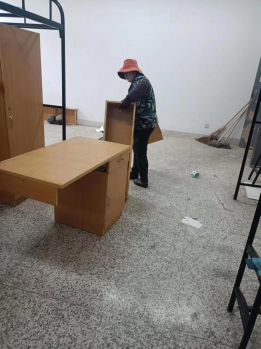 食堂樓三樓學(xué)生宿舍區(qū)功能調(diào)整,由宿舍區(qū)改為辦公區(qū),后勤管理處根據(jù)辦公區(qū)要求,做好改造方案,自4月中旬起進(jìn)場(chǎng)施工,先后清理宿舍內(nèi)床、柜等物品,鏟墻皮、刮膩?zhàn)印⒋蚰?、噴乳膠漆、更換房門(mén)、重布電線(xiàn)等工序,5月底已基本完成。