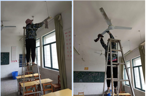 因風(fēng)扇位置較高,學(xué)生清理存在危險,后勤管理處安排維修師傅將教學(xué)樓全部共70間教室的風(fēng)扇和日光燈進(jìn)行全面的清理,同時進(jìn)行了維護(hù)。由于平時學(xué)生在教室上課,因此只能利用學(xué)生上實訓(xùn)課和課余的時間進(jìn)行清理,在限期內(nèi)完成風(fēng)扇和日光燈的維護(hù)和清理。