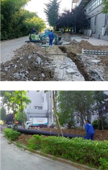 食堂南側(cè)的位置下雨時(shí)經(jīng)常積水,經(jīng)過排查,由于地勢較低暴雨時(shí)山上積水涌入,并且舊管道被油污凝固堵死,經(jīng)過領(lǐng)導(dǎo)及施工方的研究討論,決定更換為更大口徑的排水管,需要把原管道挖出更換,并增加污水井,整體施工量大,施工難度高;另外食堂西南角由于食堂的施工改造造成地勢較低積水無法排出,研究決定整體抬高,并設(shè)置排水口,徹底解決食堂周邊雨天積水嚴(yán)重的問題。