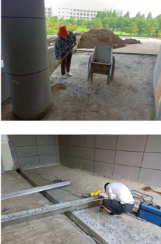 報(bào)告廳二樓每次雨后就會(huì)從樓棟之間的縫隙中漏水,花壇下面漏水,經(jīng)過研究討論決定進(jìn)行防水改造,在樓棟之間的縫隙處重新定做不銹鋼槽,兩側(cè)打防水膠,鋪設(shè)和涂刷防水材料,恢復(fù)地面;花壇內(nèi)鋪設(shè)涂刷防水材料,經(jīng)過施工改造徹底解決了多年來漏水問題。