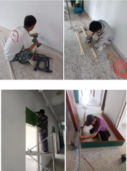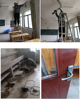 根據(jù)教育局督導(dǎo)組反饋要求,后勤管理處對需改進(jìn)的工作查找原因,制定措施,責(zé)任到人,限期整改。后勤管理處安排師傅將教學(xué)樓全部共70間教室的風(fēng)扇和日光燈上積塵進(jìn)行全面的清理,錯(cuò)開學(xué)生在教室上課時(shí)間,利用學(xué)生上實(shí)訓(xùn)課和課余的時(shí)間進(jìn)行清理。對涉及到學(xué)生宿舍樓內(nèi)墻磚、地磚和房門進(jìn)行了專項(xiàng)檢修和更換。