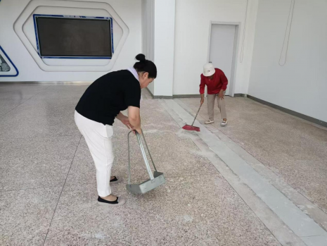 暑假期間,緊抓維修黃金期,冒酷暑、戰(zhàn)高溫、守崗位,扎實做好各項維修改造、設(shè)備檢修、水電設(shè)施改造工作,對校園的大理石路面予以維修維護,拆除了浴室內(nèi)部吊頂;清掏化糞池,清洗排水管道。