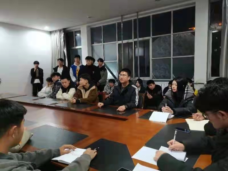 11月10日下午五點半,在多媒體212會議室召開了我院本學期第一次全體例會。參加例會的成員是學生會干部以及各班班長與團支書,本次會議由趙冬冬老師主持。