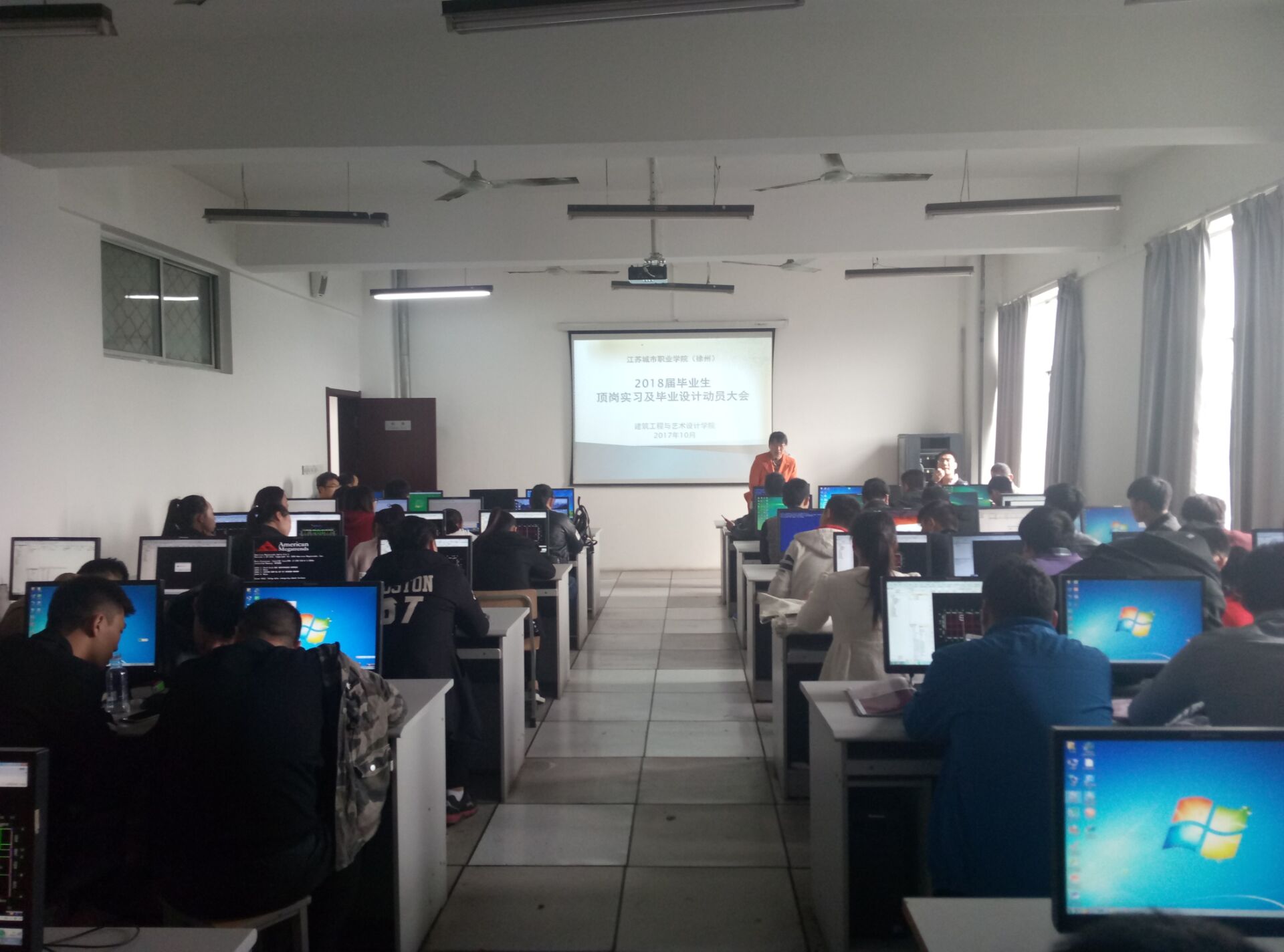 為促進(jìn)2018屆畢業(yè)設(shè)計工作的順利開展,強(qiáng)化畢業(yè)設(shè)計管理,確保畢業(yè)設(shè)計質(zhì)量,2017年10月12日與下午2點(diǎn)20分,在多媒體407機(jī)房召開了畢業(yè)設(shè)計動員大會。參加本次畢業(yè)動員大會的有所有15級三年畢業(yè)生以及畢業(yè)設(shè)計專 業(yè)教師。本次大會由田秋紅老師主持。