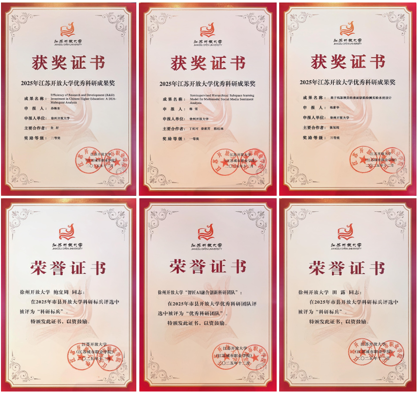 近日,全省辦學系統(tǒng)科研工作聯(lián)席會議在南通開放大學召開,江蘇開放大學丁榮余書記出席并作了專題報告。會議還舉行了2025年辦學系統(tǒng)優(yōu)秀科研成果、科研標兵、優(yōu)秀科研團隊、科研管理先進個人頒獎活動,我校選送的科研作品和候選人獲得多項表彰,成績斐然,成果豐碩。