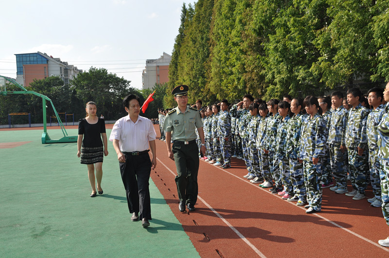 杜吉林書記在團(tuán)委副書記孔揚(yáng)和承訓(xùn)部隊(duì)連隊(duì)指導(dǎo)員賈廣衛(wèi)的陪同下檢閱了13級新生受訓(xùn)班級。“同學(xué)們好!”“同學(xué)們辛苦了!”——“為人民服務(wù)!”。杜書記的親切問候和受閱方隊(duì)的響亮回答,響徹云天。響亮的口號,雄壯的隊(duì)伍,莊嚴(yán)的敬禮,展示了我校學(xué)生良好的精神風(fēng)貌。