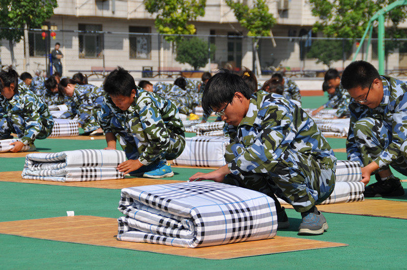 在分列式表演中,新生們身著統(tǒng)一的服裝,軍姿威武,排著整齊的隊(duì)列,邁著矯健的步伐,喊著響亮的口號依次從主席臺下走過,接受學(xué)校領(lǐng)導(dǎo)的檢閱,展示他們9天的辛勤訓(xùn)練成果。整齊劃一的動作,充分展示了我校學(xué)子的昂揚(yáng)斗志,贏得了在場師生的熱烈掌聲。