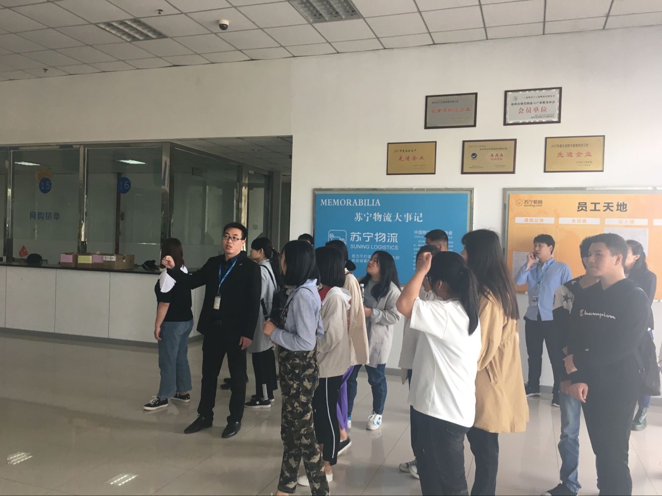 2018年4月27日星期五上午經(jīng)貿(mào)學院組織中職對接高職的電子商務(wù)班、會計班和高職17物流的同學赴徐州蘇寧物流中心參觀,蘇寧物流中心的秦玉蛟經(jīng)理就蘇寧發(fā)展歷程、互聯(lián)網(wǎng)轉(zhuǎn)型、科技創(chuàng)新力、企業(yè)文化建設(shè)等各個方面向老師和同學們進行了詳細的講解。隨后,師生一起參觀了蘇寧的物流倉庫和配送中心,物流倉庫現(xiàn)代物流設(shè)施齊全;配送中心分工明確。