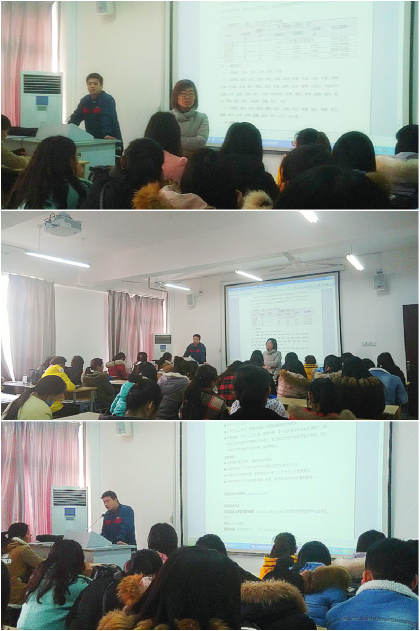 會(huì)議先由權(quán)紅蓮院長(zhǎng)對(duì)實(shí)習(xí)的基本要求和實(shí)習(xí)單位做簡(jiǎn)要介紹,接著上海佳吉公司代表王經(jīng)理用視頻和幻燈片介紹了公司的情況和企業(yè)用人理念、員工的培訓(xùn)、發(fā)展途徑,然后詳細(xì)介紹公司的各項(xiàng)主要工作與相關(guān)薪資待遇,分析各類(lèi)專(zhuān)業(yè)相對(duì)應(yīng)的職位,最后公司代表對(duì)學(xué)生問(wèn)題進(jìn)行現(xiàn)場(chǎng)答疑。