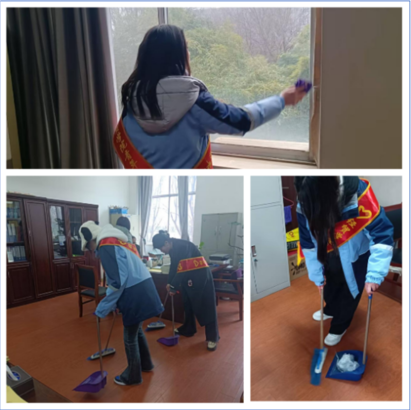 隨后,志愿者們馬不停蹄地奔赴學(xué)院辦公樓,將服務(wù)的熱情帶到了經(jīng)貿(mào)學(xué)院老師的辦公室。在這里,大家分工明確、配合默契。一部分同學(xué)負責(zé)擦拭桌椅門窗,手中的抹布在玻璃與桌椅上快速移動,不一會兒,玻璃變得明亮通透,桌椅也干凈如新;另一部分同學(xué)則專注于清掃地面垃圾,掃帚所到之處,灰塵與垃圾紛紛歸位。一個多小時的時間里,辦公室內(nèi)一片忙碌景象,大家忙得不亦樂乎。隨著最后一處衛(wèi)生死角被清理干凈,辦公室環(huán)境徹底大變樣,變得干凈整潔、溫馨舒適,為老師們營造了一個更加宜人的辦公環(huán)境。