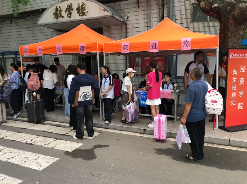 為確保迎新工作萬無一失,經(jīng)貿(mào)學(xué)院提前成立迎新專項工作組,從流程規(guī)劃、場地布置到人員分工均做了細(xì)致安排。在學(xué)院迎新點,醒目的指引牌、清晰的報到流程表、溫馨的歡迎橫幅一目了然,志愿者們身著統(tǒng)一服裝,早早到位等候 —— 有的負(fù)責(zé)引導(dǎo)新生及家長找到報到窗口,有的協(xié)助核對新生信息、辦理入學(xué)手續(xù),有的幫忙搬運行李,還有的耐心解答關(guān)于宿舍分配、校園設(shè)施位置等疑問,整個現(xiàn)場忙而不亂、井然有序。?