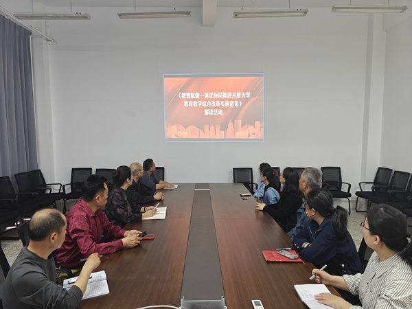開放教育學(xué)院全體教職員工線上參與學(xué)習(xí)。在解讀活動中,相關(guān)負(fù)責(zé)人詳細(xì)闡述了《實(shí)施意見》的背景、目標(biāo)和主要任務(wù),深入分析了數(shù)智技術(shù)在教育教學(xué)中的應(yīng)用前景和發(fā)展趨勢。教職員工們認(rèn)真聆聽,仔細(xì)記錄,對《實(shí)施意見》有了更全面、更深入的理解。