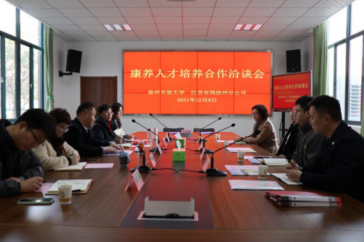 為進(jìn)一步加強(qiáng)與主流媒體合作,探索構(gòu)建康養(yǎng)與媒體合作新模式,12月9日,江蘇有線徐州分公司黨委書記、總經(jīng)理邱強(qiáng)一行來校洽談校企合作事宜,副校長胡釗涵出席活動(dòng)。