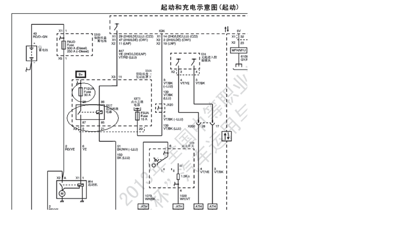 此時應(yīng)檢查起動機(jī)電路,F12UA保險絲,KR27起動機(jī)繼電器