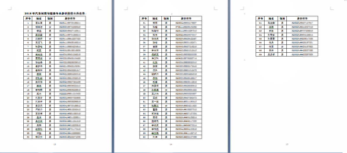 近三年社會培訓花名單
