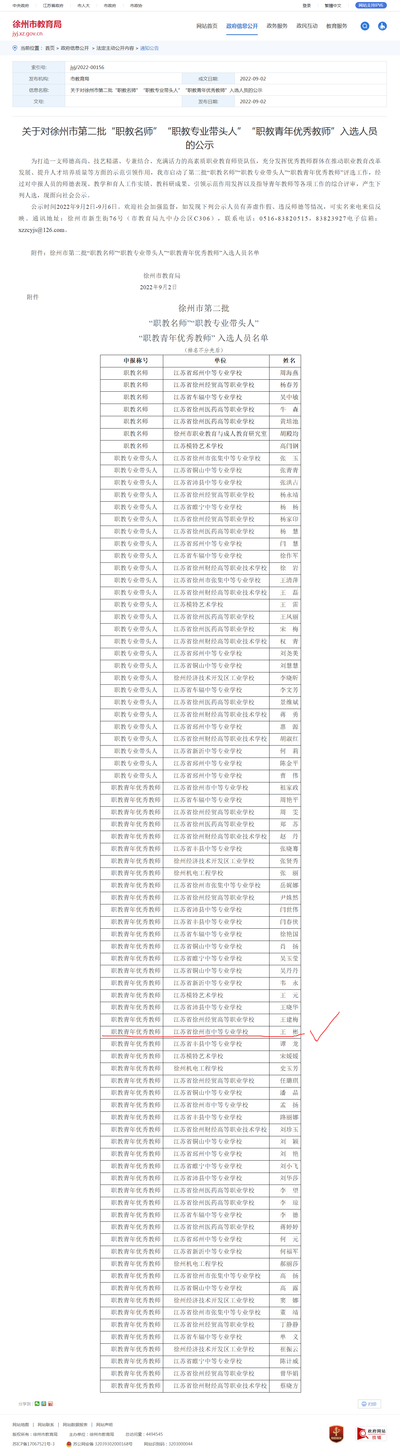 在徐州市第二批“職教名師”“職教專業(yè)帶頭人”“職教青年優(yōu)秀教師”評選中,工作室王彬老師入選為“職教優(yōu)秀青年教師”!
