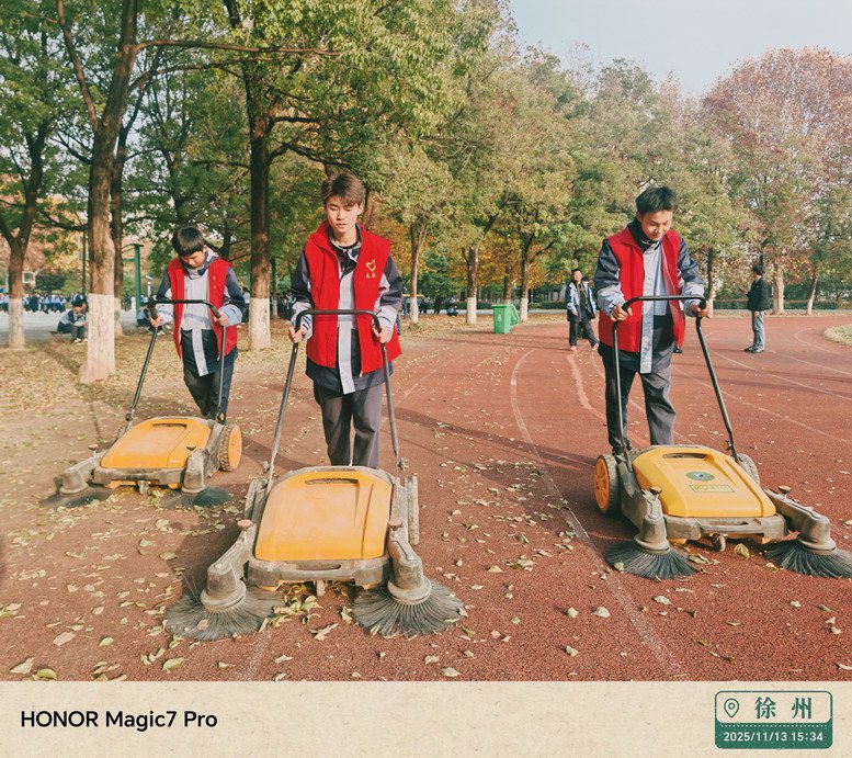 活動(dòng)現(xiàn)場(chǎng),志愿者們手持掃帚、簸箕、垃圾袋等工具,分工協(xié)作、默契配合。大家彎腰俯身,細(xì)致清理跑道旁的紙屑、飲料瓶等垃圾,認(rèn)真清掃操場(chǎng)內(nèi)外大量枯黃落葉, 重點(diǎn)整治角落縫隙等衛(wèi)生盲區(qū)。凜冽寒風(fēng)中,志愿者們干勁十足,忙碌的身影構(gòu)成了校園里一道靚麗的風(fēng)景線。經(jīng)過(guò)近兩小時(shí)的集中清掃,操場(chǎng)路面潔凈如新,整體環(huán)境煥然一新。?