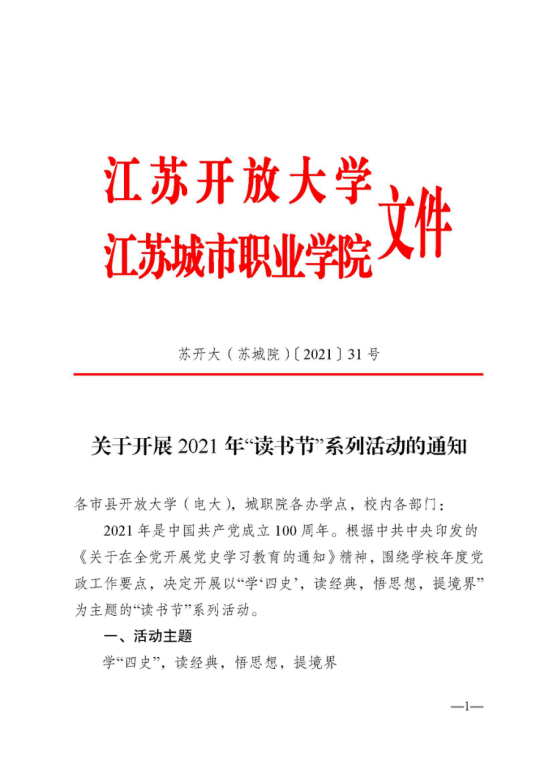 關(guān)于開展2021年“讀書節(jié)”系列活動的通知