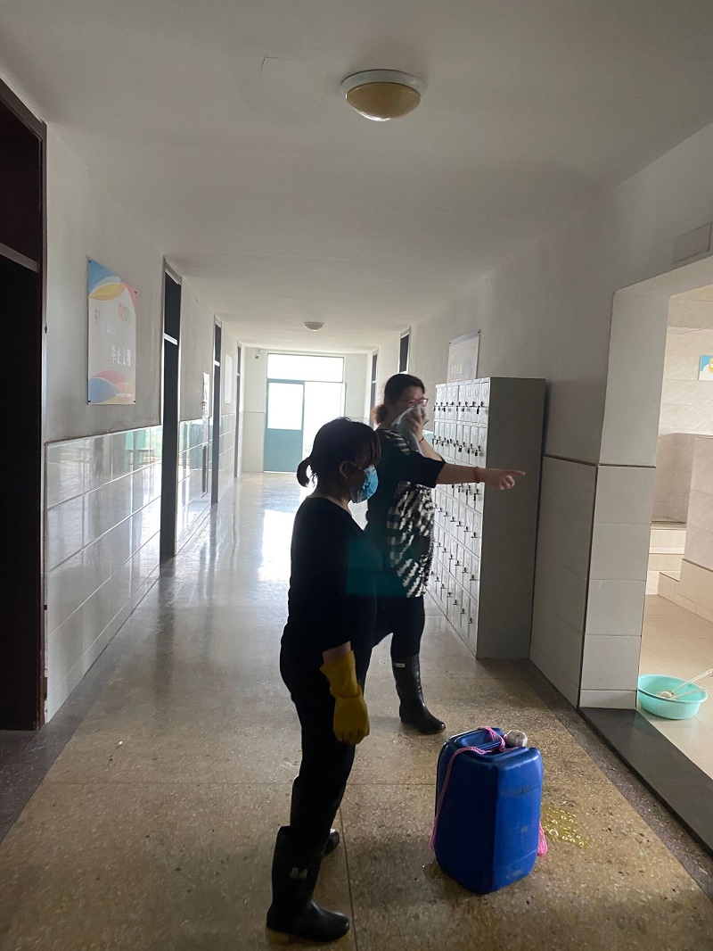 暑期前一天,袁主任帶領宿管工作人員進行了宿舍的大掃除,并對宿舍進行了消毒和安全檢查,消除安全隱患。