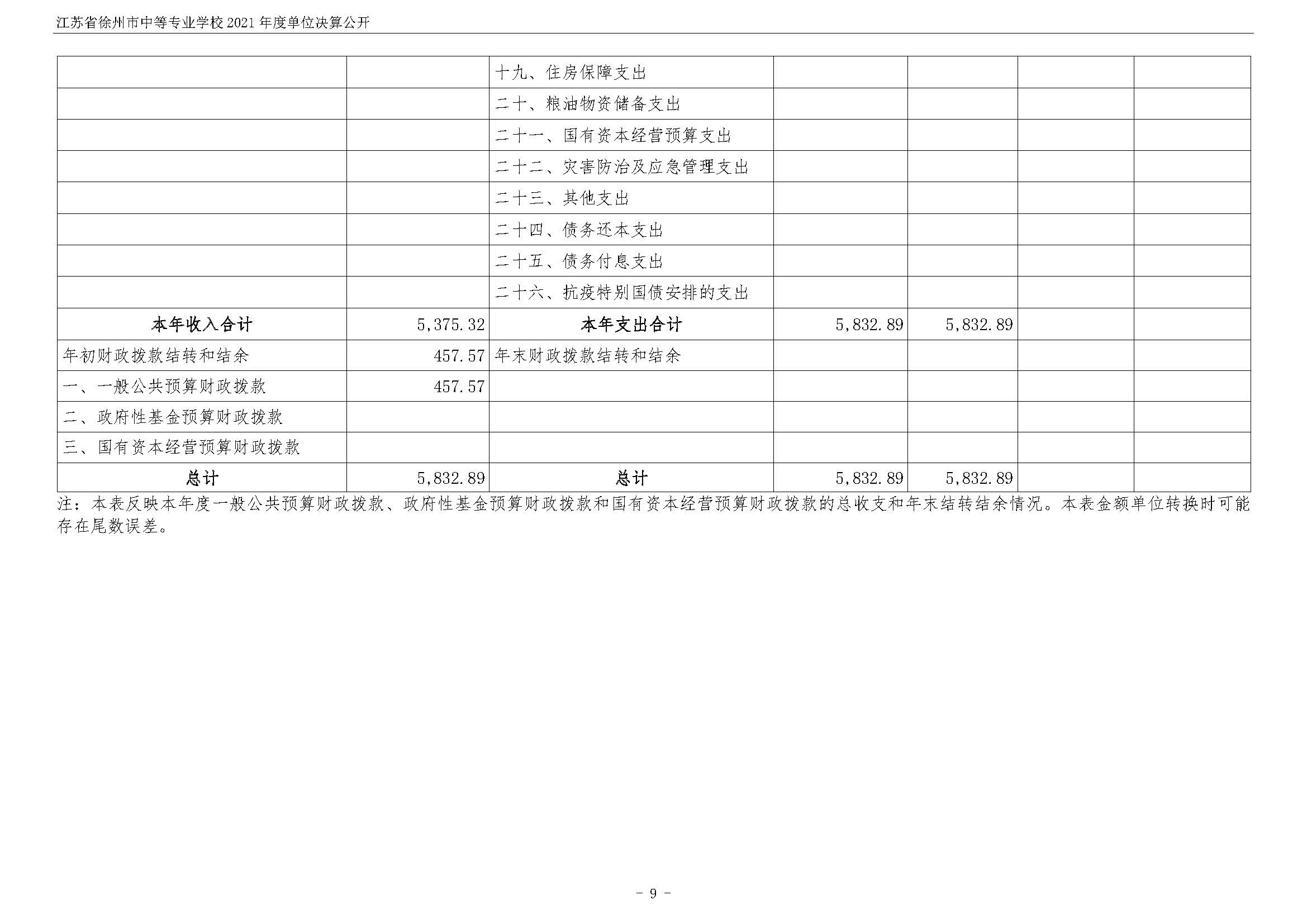 江蘇省徐州市中等專業(yè)學校2021年度單位決算公開
