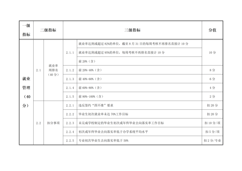 江蘇城市職業(yè)學(xué)院畢業(yè)生就業(yè)工作量化評價分值表